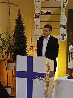 Etwa 3-4 mal pro Jahr gibt es im Schönthalersaal eine Andacht mit einem Vortrag/Präsentation und anschließendem Kirchencafé.